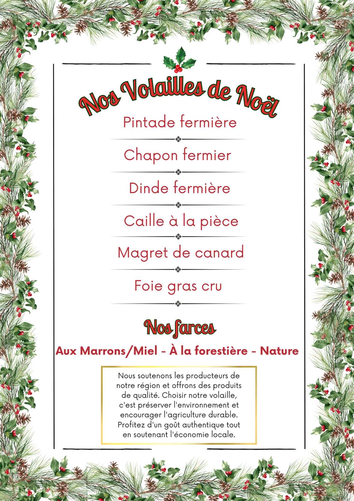 Nous sélectionnons avec soin nos volailles locales pour vos repas de Noël.